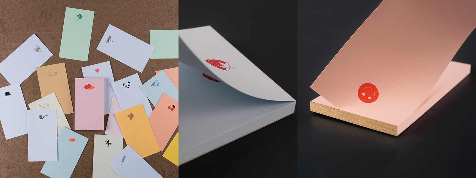 Outre la réalisation des travaux d’impression sur mesure, les collections de papeterie se succèdent. On y trouve toute une gamme de carterie au design épuré mais aussi divers collections de carnets, cahiers, blocs, papiers à lettre, enveloppes, blocs mémo, calendriers mensuels et semainiers. La ligne de cette maison s’identifie autant par le plaisir de la lettre que par le soin de la sélection minutieuse des papiers et couleurs utilisés.