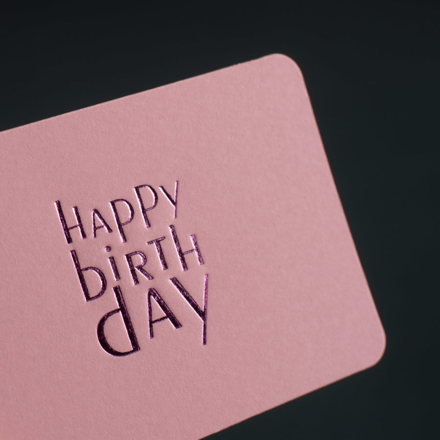 mini carte HAPPY BIRTH DAY rose + mini enveloppe framboise