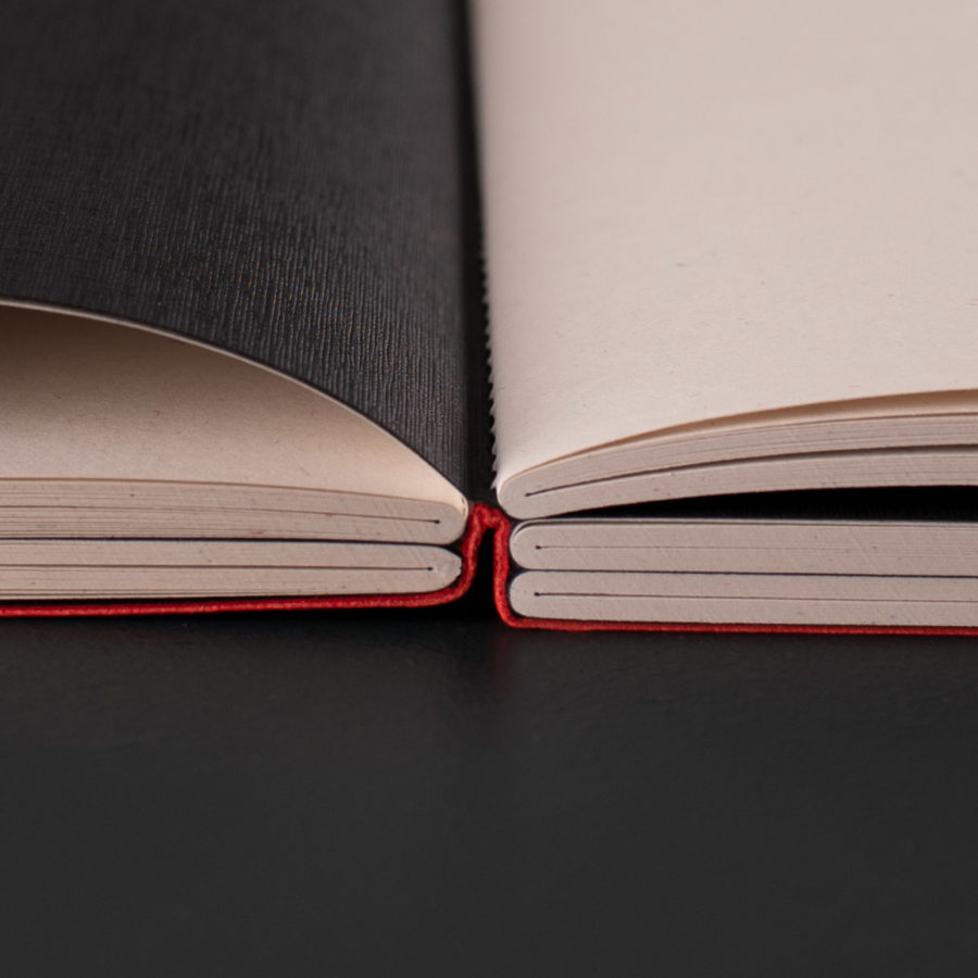 Carnets cuir A5, Nouveautés75 €un carnet avec une couverture en véritable cuir d'agneau pleine fleurpages viergesformat A5 15.8 x 22 cm 5 cahiers de 48 pages reliés par un dos carré, soit 240 pages au totalchaque cahier est séparé par une page de papier toilé noir, ainsi le carnet contient des intercalaires bien utilespapier 120g blanc naturel moucheté avec incrustations naturelles des fibres du papier- ce carnet A5 dos carré est un cahier qui vous accompagnera longtemps sa couverture en cuir se patinera avec le temps selon votre utilisation - finitions relié par une piqûre singer de fil gris finition dos carré très résistantecuir français d'agneau pleine fleur ce cuir de haute qualité en fait un carnet unique la couverture est imprimée à sec avec la mention "NOTES"