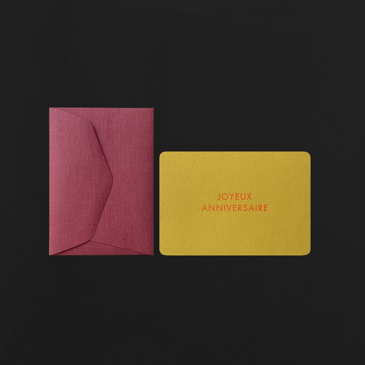 MINI CARD JOYEUX ANNIVERSAIRE banana + raspberry ENVELOPE