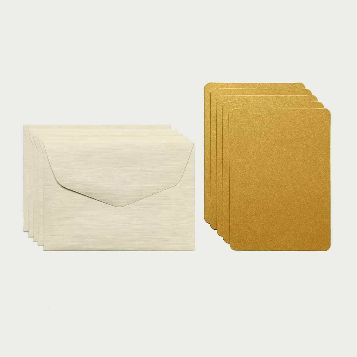 Pack of 5 A6 GOLD cards and 5 WHITE 100g C6 envelopes