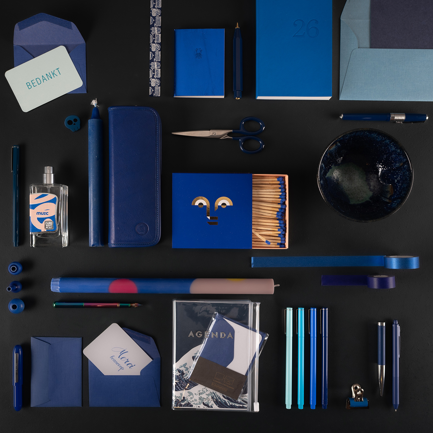 Vous trouverez dans nos boutique de Bruxelles et de Nantes des articles de papeterie tels que des carnets, des blocs notes, des cahiers cousus, à spiral ou dos collé, du papier à lettres, des enveloppes, des cartes postales, des carnets de dessin, des instruments d’écriture (stylos plume, stylos bille, crayons à papier, crayons de couleurs, feutres fins, feutres fluorescents, …), divers accessoires de papeterie comme des gommes, des stickers, des magnets, des ciseaux, des cachets, de l’encre, de la colle, des trousses en cuir, des porte-cartes, des agrafeuses, du papier cadeau, du tape, des origamis, et d’autres instruments.