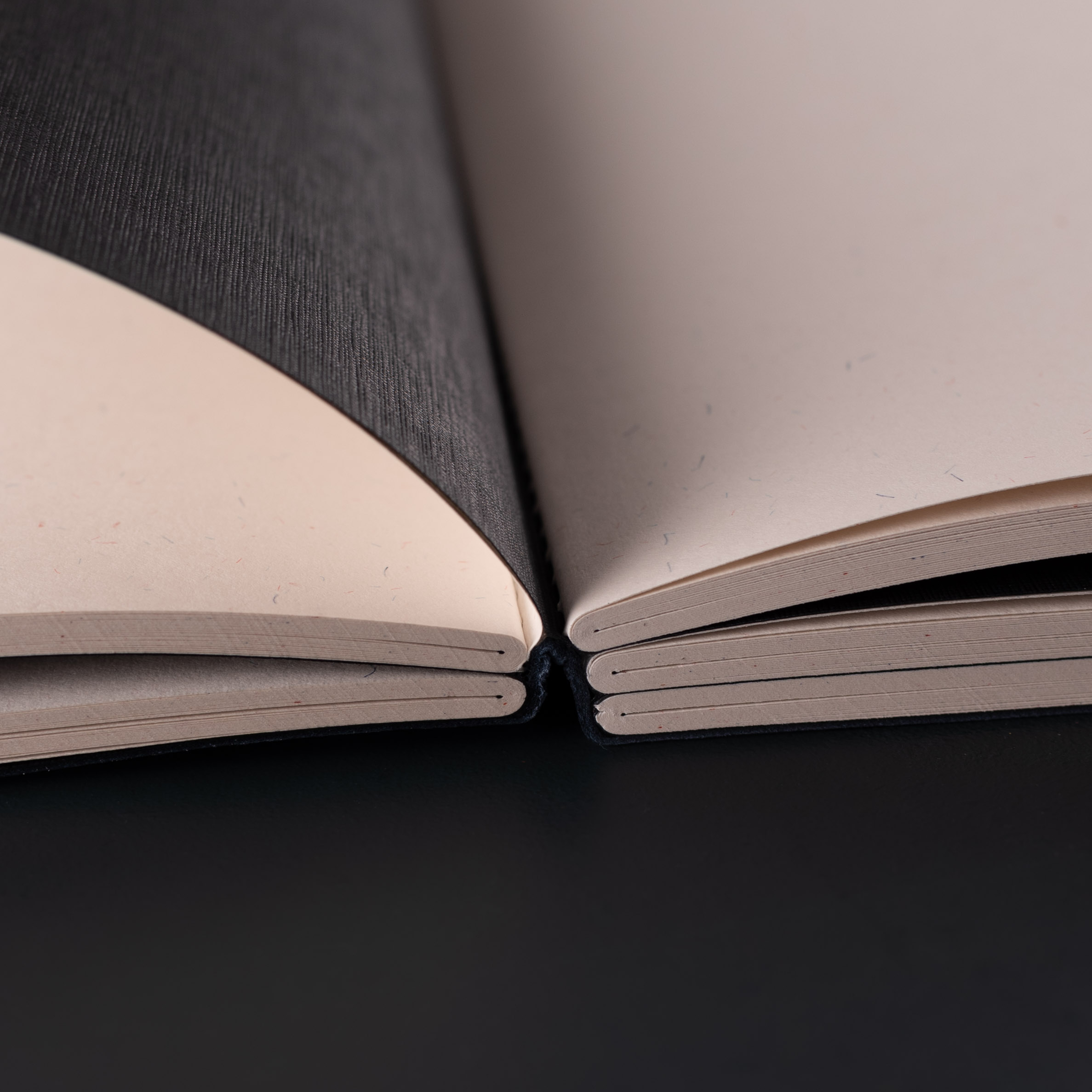 chaque cahier est séparé par une page de papier toilé noir, ainsi le carnet contient des intercalaires bien utiles