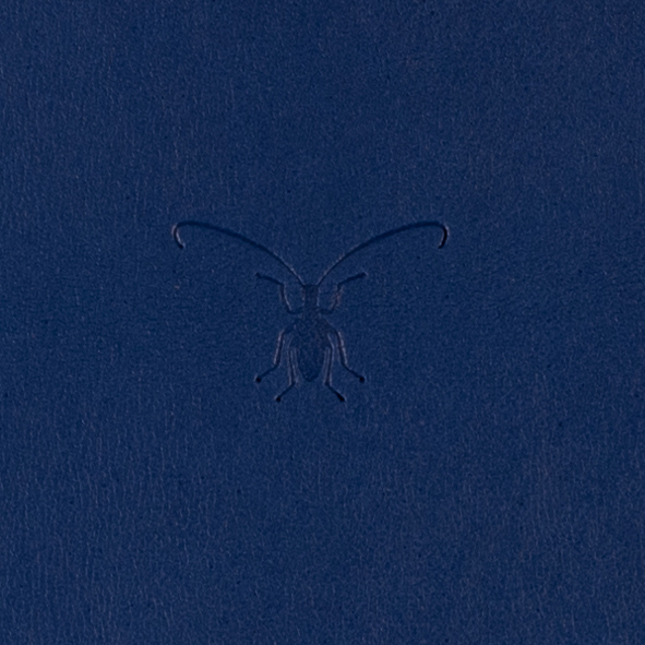 sa couverture en cuir se patinera avec le temps selon votre utilisation et l’impression à sec avec un insecte longicorne, à grandes antennes, en fait un carnet unique