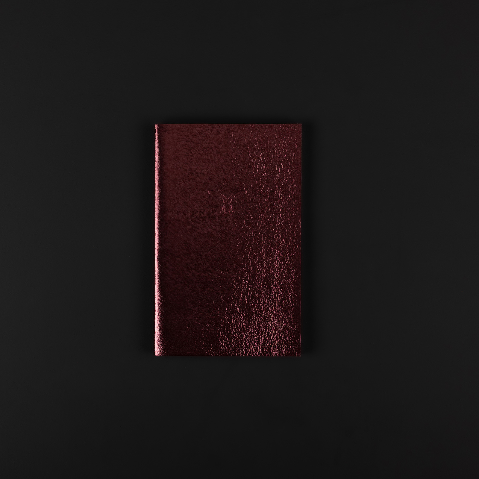 sa couverture en cuir se patinera avec le temps selon votre utilisation et l’impression à sec avec un insecte longicorne, à grandes antennes, en fait un carnet unique